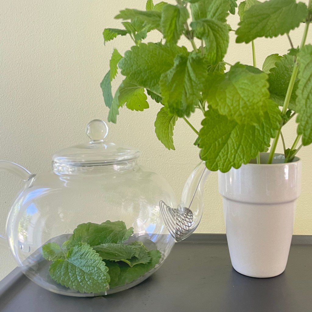 The leaves of the plants listed above also make pleasant, refreshing tisanes, both hot and iced. To make a tisane, after washing the leaves and picking them off of their stems, place them in a teapot and cover them with boiling water, or water that’s a little under the boil.