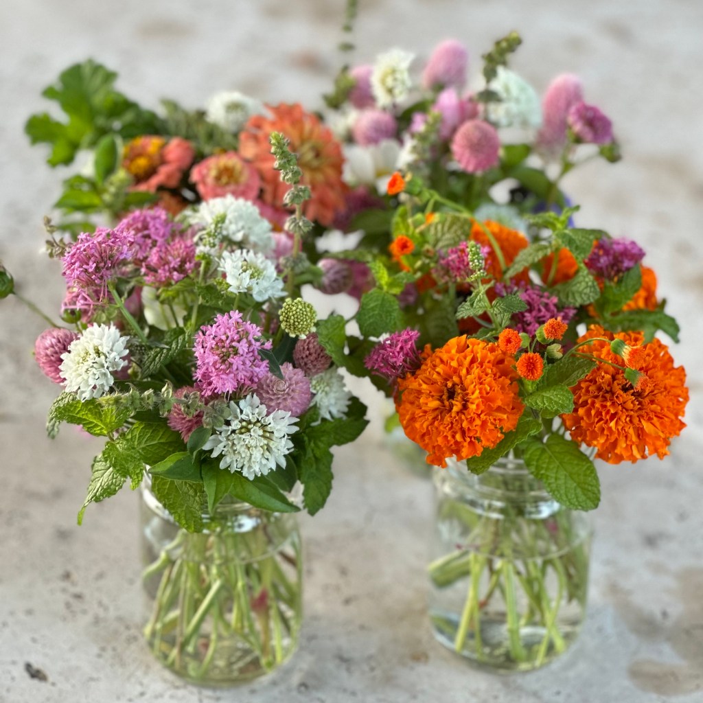 Herbs and scented-leaf geraniums are some of my favorite plants to grow for bouquet foliage. Their soft leaves bring a subtle, refreshing scent and make arrangements feel like they’ve just come from the garden. Several of the plants I use for bouquets also taste great in tisanes (herbal teas). Here are the plants that I grow for both of these purposes:
