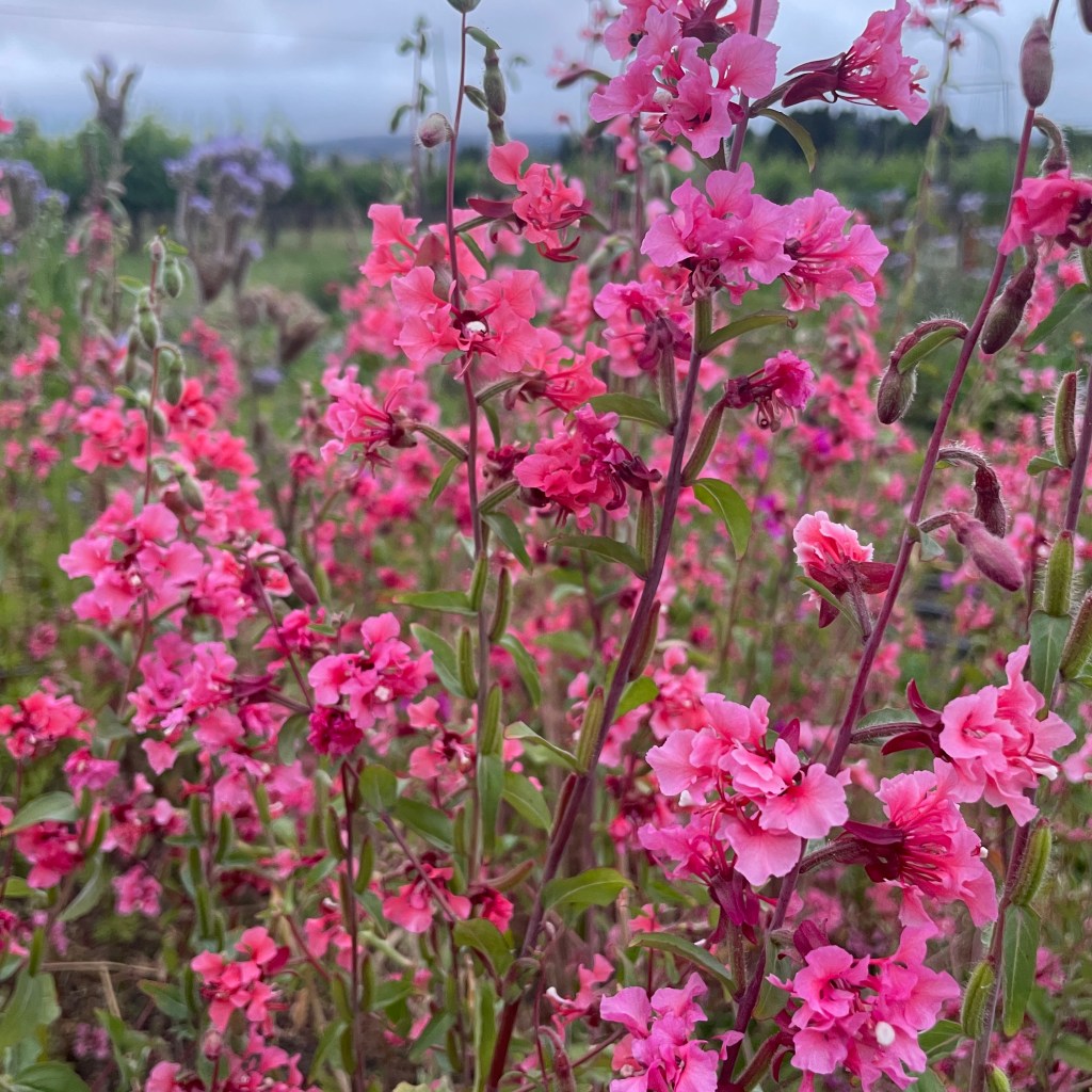 Elegant Clarkia (Clarkia unguiculata): This species of clarkia is a sturdy, shrub-like plant with tall flowering stems. Its ruffly flowers come in single and double forms and in many colors, including salmon, magenta, and white. For maximum vase life, it’s best to cut elegant clarkia when only a couple of flowers at the base of the stem have begun to open. The blooming sequence goes from the bottom to the top, so over the course of the next week, new flowers will continue to bloom up the stem, with the ones at the very bottom eventually falling off.