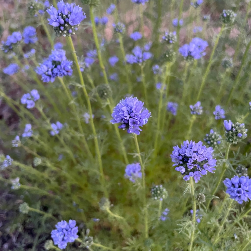 Blue Thimble Flower (Gilia capitata): This plant, also known as Globe Gilia, has flowers with a lovely lavender-blue color and a sweet scent (in image above). Their vase life is longest (about 4 to 6 days) if you cut them when only partially open. The top of the stems sometimes flops a bit after cutting, so I find that they do best in mixed bouquets with other flowers to support them. But their pretty color blends nicely with many other colors, so it’s easy to find a place for them in arrangements.